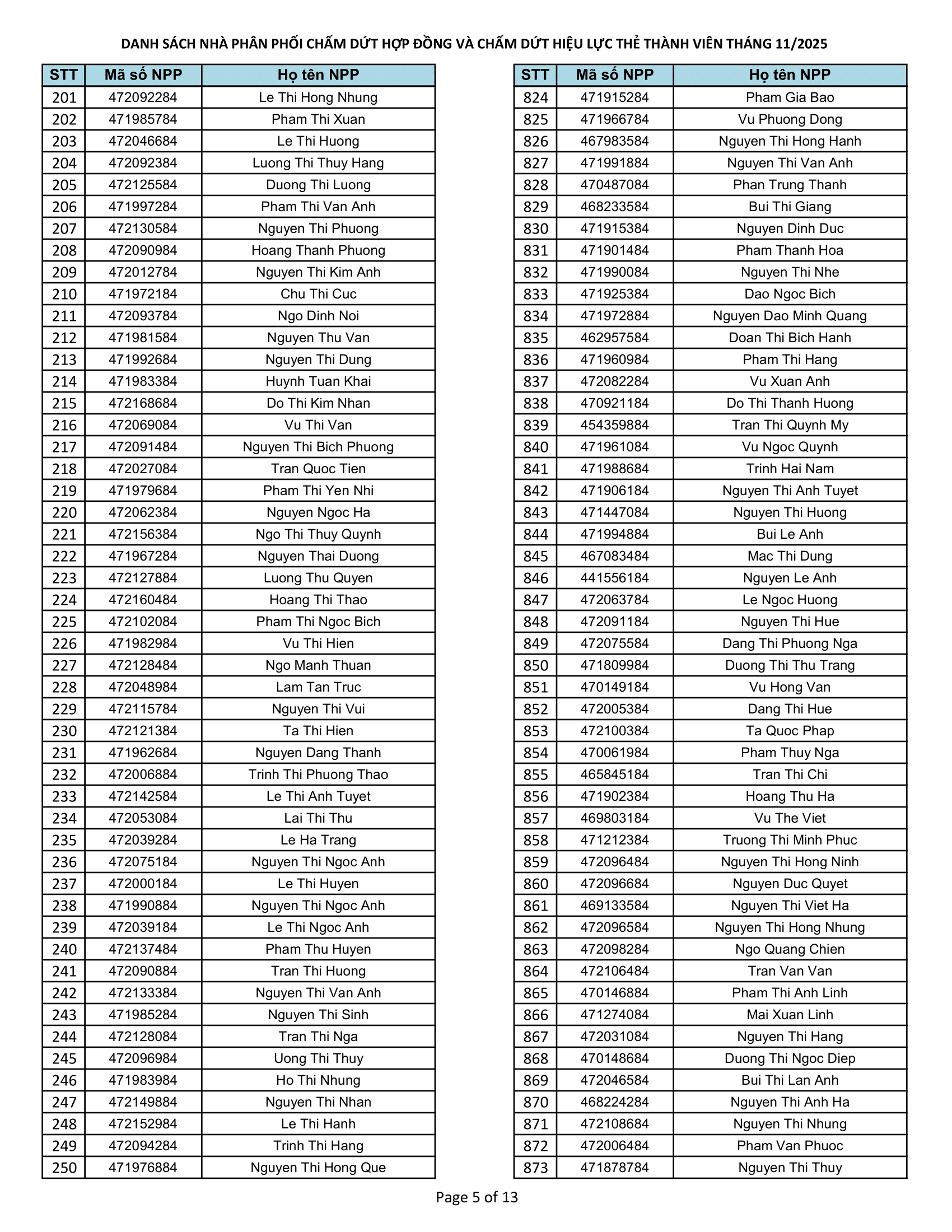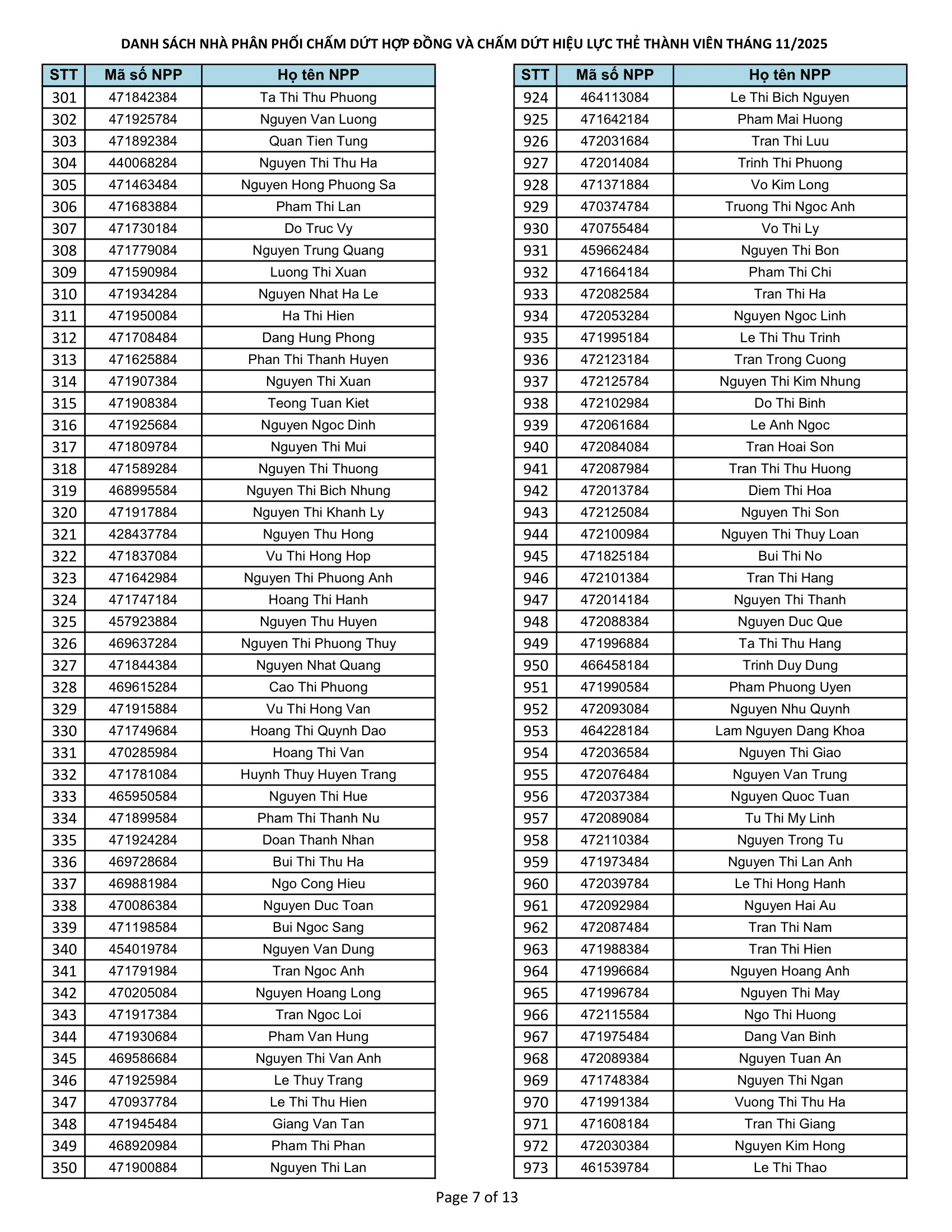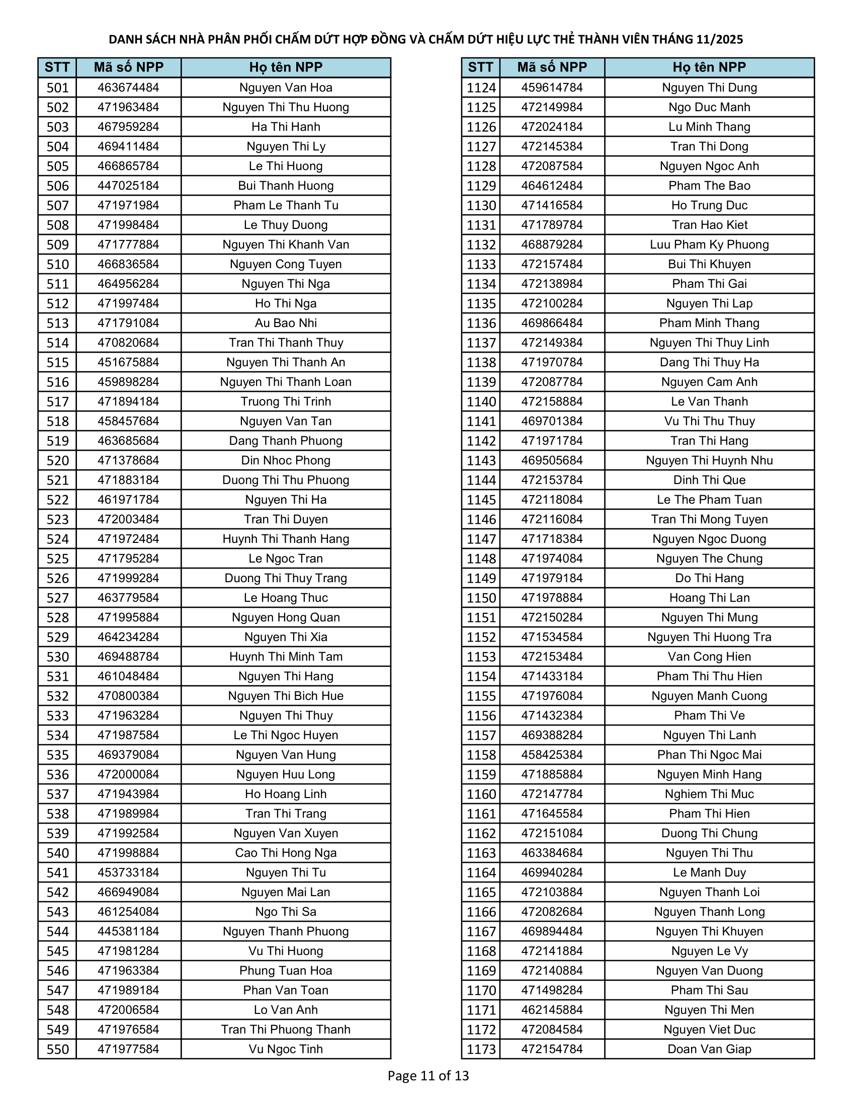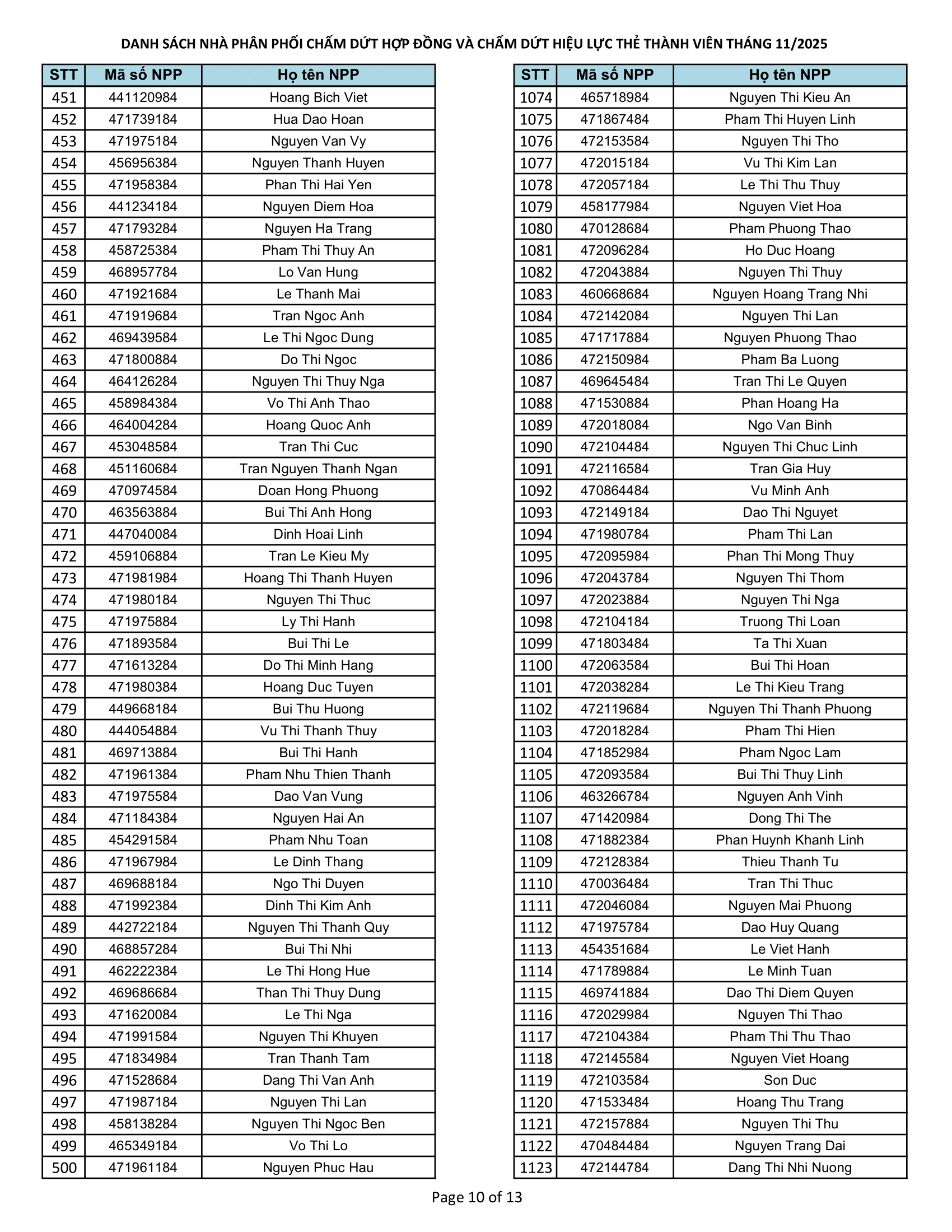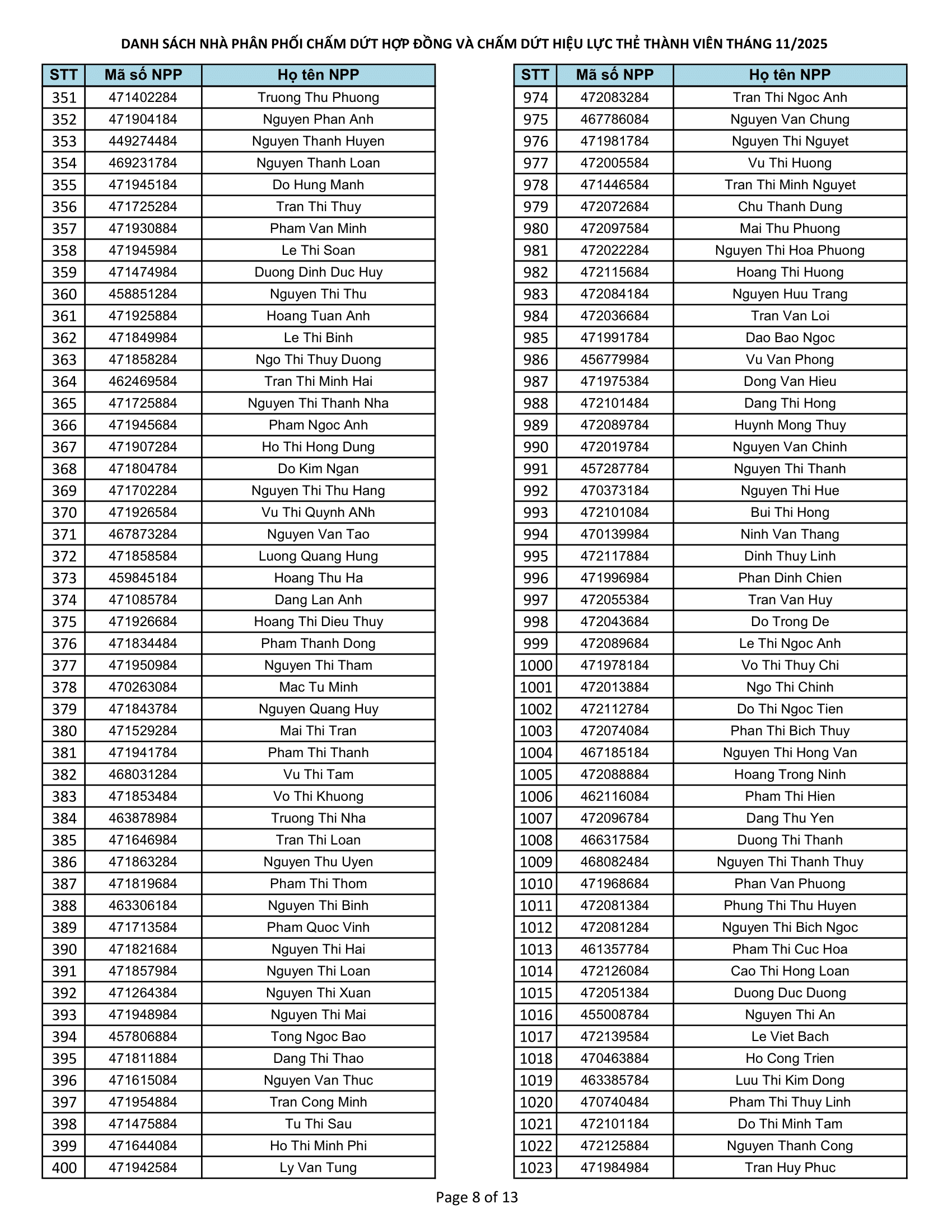 Về việc: Danh sách chấm dứt hợp đồng Nhà Phân Phối và Chấm dứt hiệu lực thẻ thành viên tháng 11-2025
